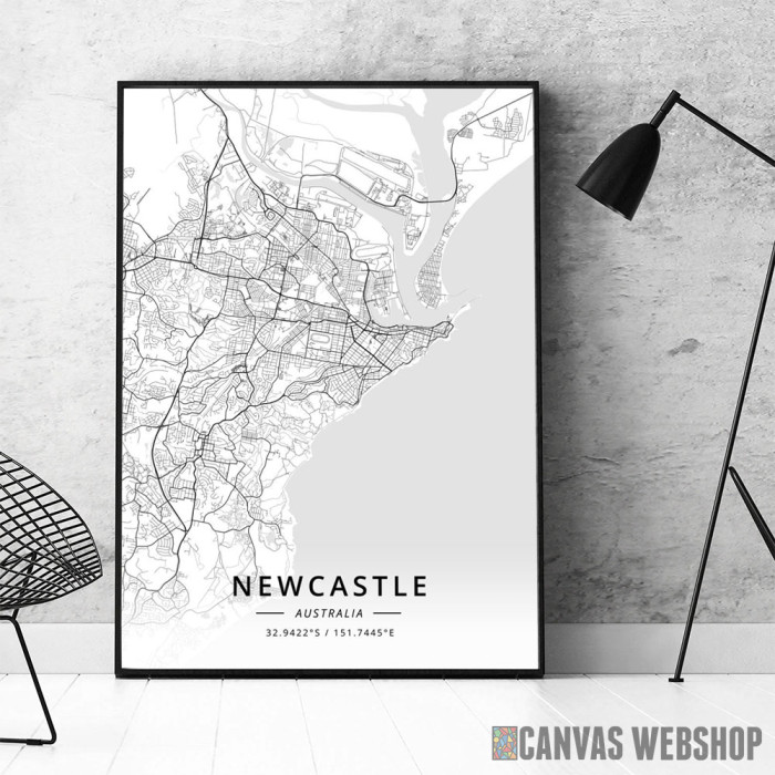 Njukastl mapa - white je poster odštampan na papiru koji uokviruje elegantan drveni ram sa staklom. Uramljeni poster je dostupan u različitim dimenzijama.