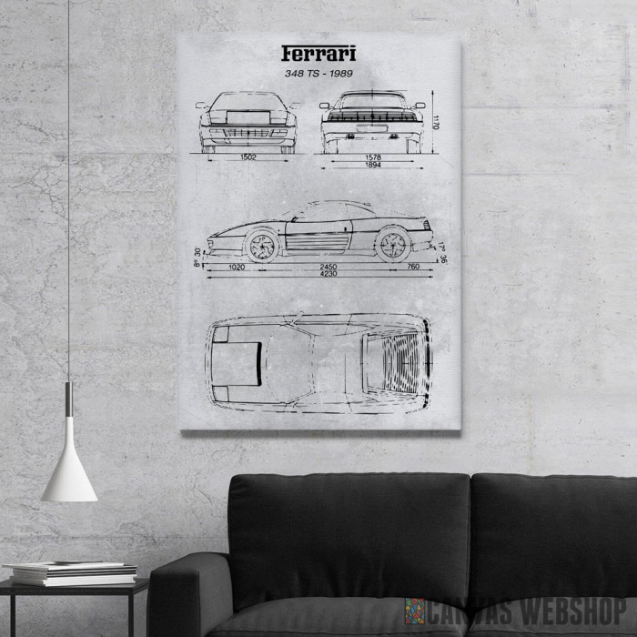 No070 Ferrari 348 TS 1989 je slika odštampana na kvalitetnom pamučnom platnu koje je zategnuto na ram od bukovog drveta. Slika No070 Ferrari 348 TS 1989 je dostupna u različitim dimenzijama.