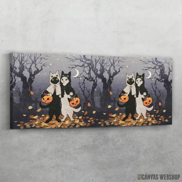 Noc vestica macka je slika odštampana na kvalitetnom pamučnom platnu koje je zategnuto na ram od bukovog drveta. Slika Noc vestica macka je dostupna u različitim dimenzijama.