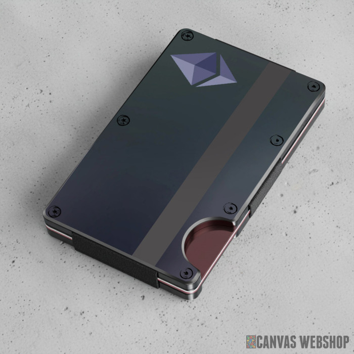 Kućište čine metalne ploče povezane distancerima i micro-vijcima radi stabilnosti. Koristi se lagana legura metala kako bi novčanik bio tanak, a otporan na habanje. Šnala je oblikovana za sigurno držanje papirnog novca bez gužvanja.
