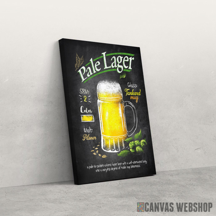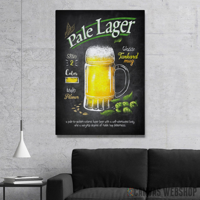Pale Lager je slika odštampana na kvalitetnom pamučnom platnu koje je zategnuto na ram od bukovog drveta. Slika Pale Lager je dostupna u različitim dimenzijama.