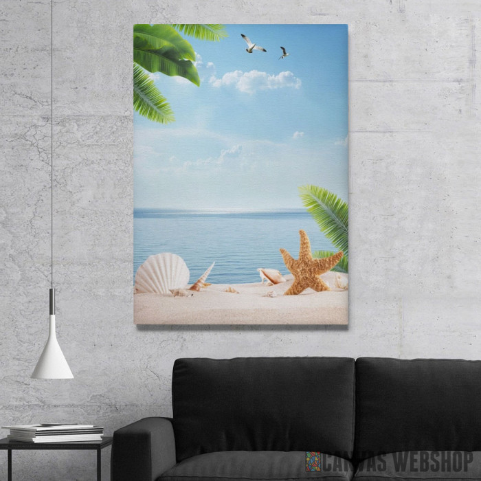 Palm Beach With Seashells je slika odštampana na kvalitetnom pamučnom platnu koje je zategnuto na ram od bukovog drveta. Slika Palm Beach With Seashells je dostupna u različitim dimenzijama.
