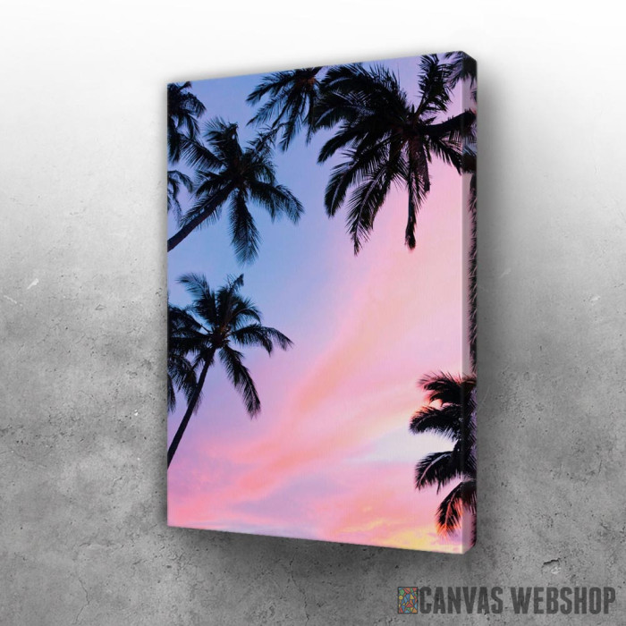 Palm Trees Purple Sky je slika odštampana na kvalitetnom pamučnom platnu koje je zategnuto na ram od bukovog drveta. Slika Palm Trees Purple Sky je dostupna u različitim dimenzijama.