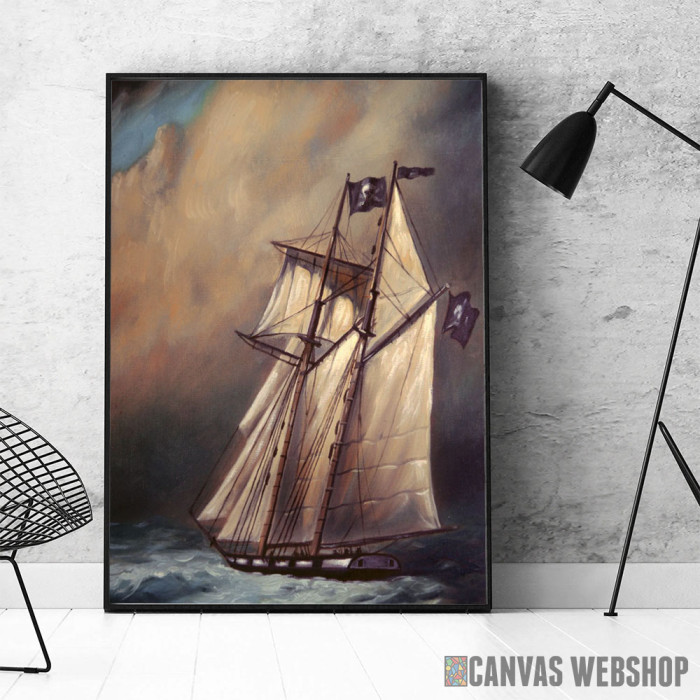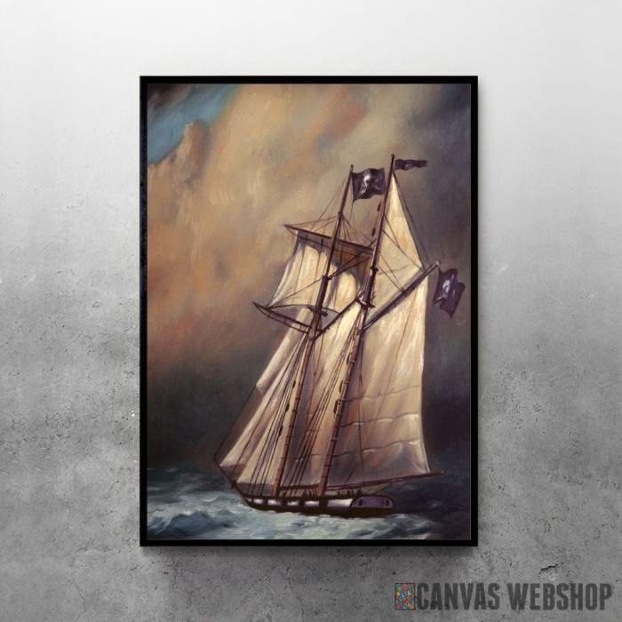 Pirate Schooner In Stormy je poster odštampan na papiru koji uokviruje elegantan drveni ram sa staklom. Uramljeni poster je dostupan u različitim dimenzijama.
