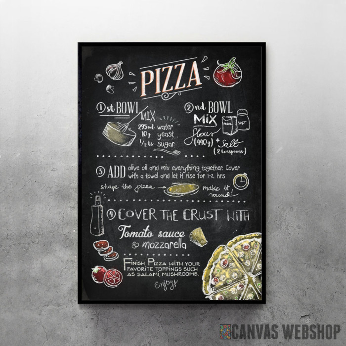 Pizza je poster odštampan na papiru koji uokviruje elegantan drveni ram sa staklom. Uramljeni poster je dostupan u različitim dimenzijama.