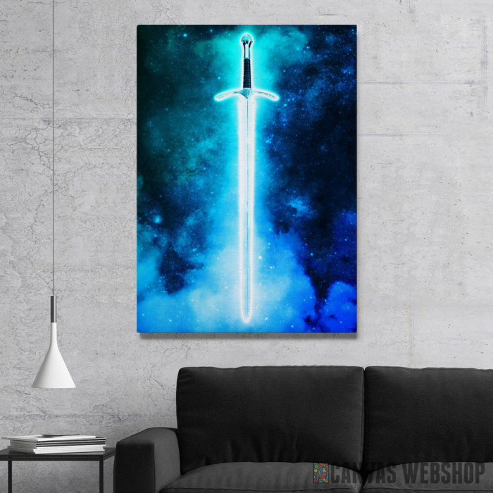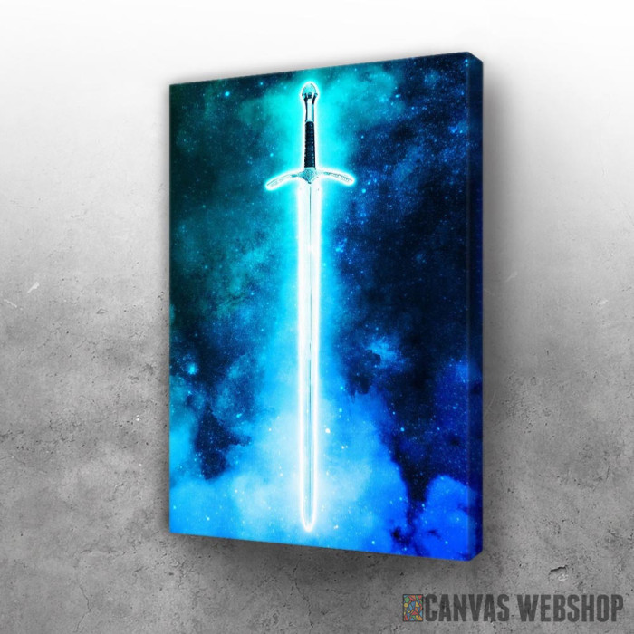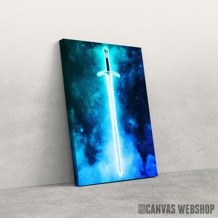 Plavi mač je slika odštampana na kvalitetnom pamučnom platnu koje je zategnuto na ram od bukovog drveta. Slika Plavi mač je dostupna u različitim dimenzijama.