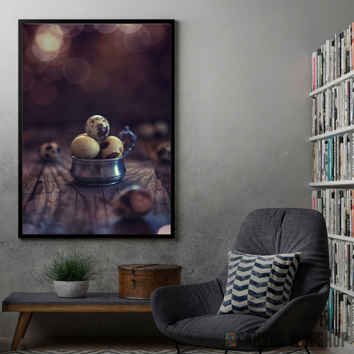 Prepeličina Jaja je poster odštampan na papiru koji uokviruje elegantan drveni ram sa staklom. Uramljeni poster je dostupan u različitim dimenzijama.