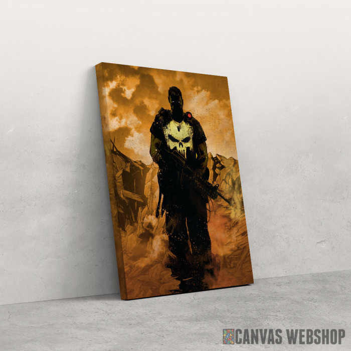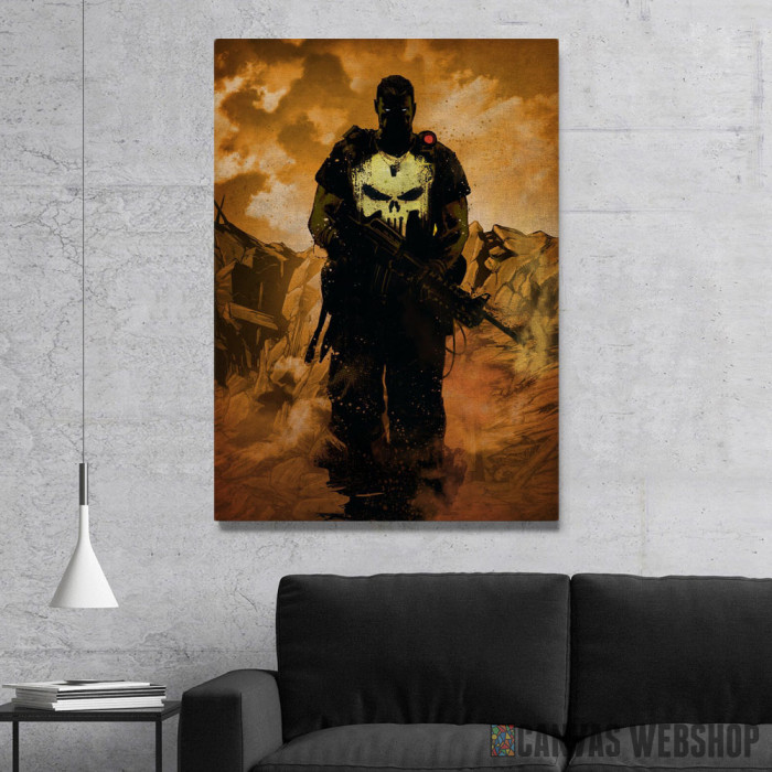 Punisher je slika odštampana na kvalitetnom pamučnom platnu koje je zategnuto na ram od bukovog drveta. Slika Punisher je dostupna u različitim dimenzijama.