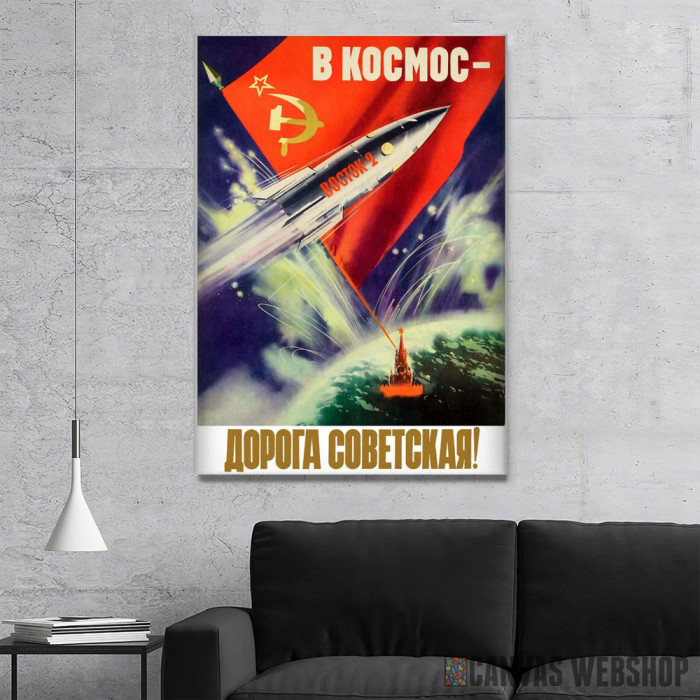 Put u svemir sovjetskim raketama je slika odštampana na kvalitetnom pamučnom platnu koje je zategnuto na ram od bukovog drveta. Slika Put u svemir sovjetskim raketama je dostupna u različitim dimenzijama.