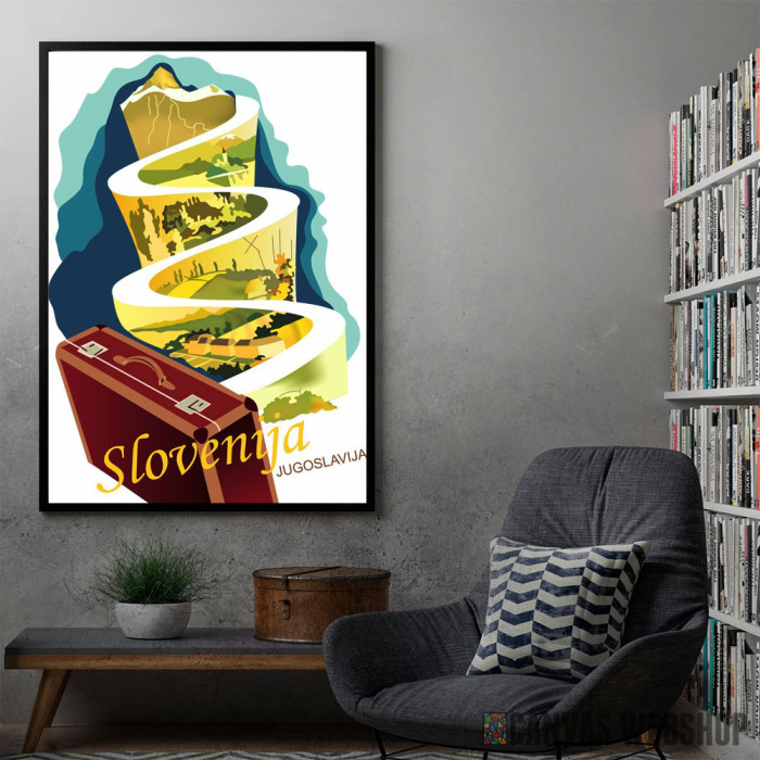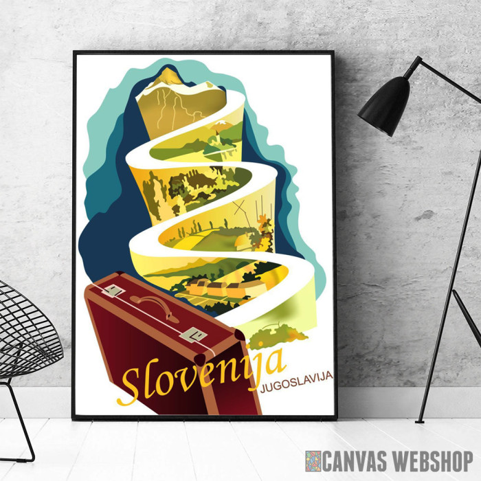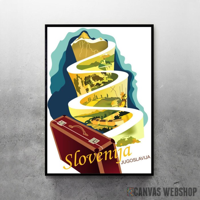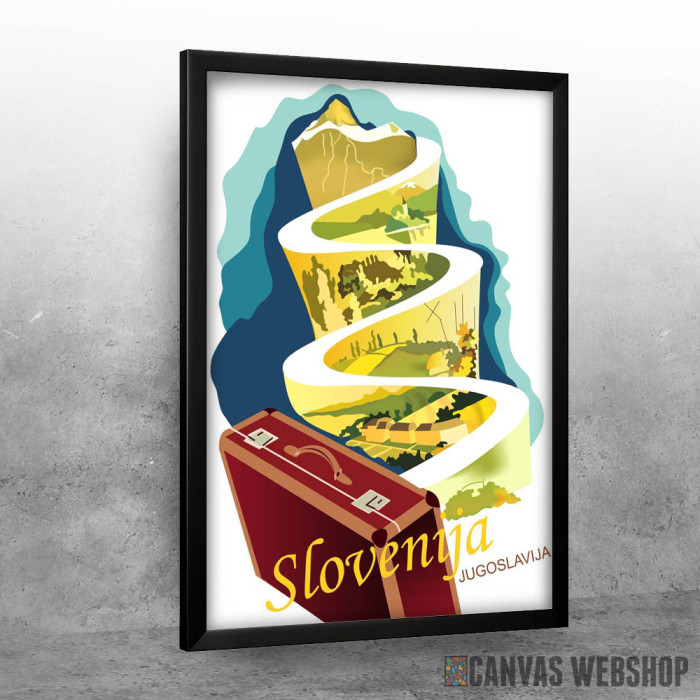 Put za Sloveniju je poster odštampan na papiru koji uokviruje elegantan drveni ram sa staklom. Uramljeni poster je dostupan u različitim dimenzijama.