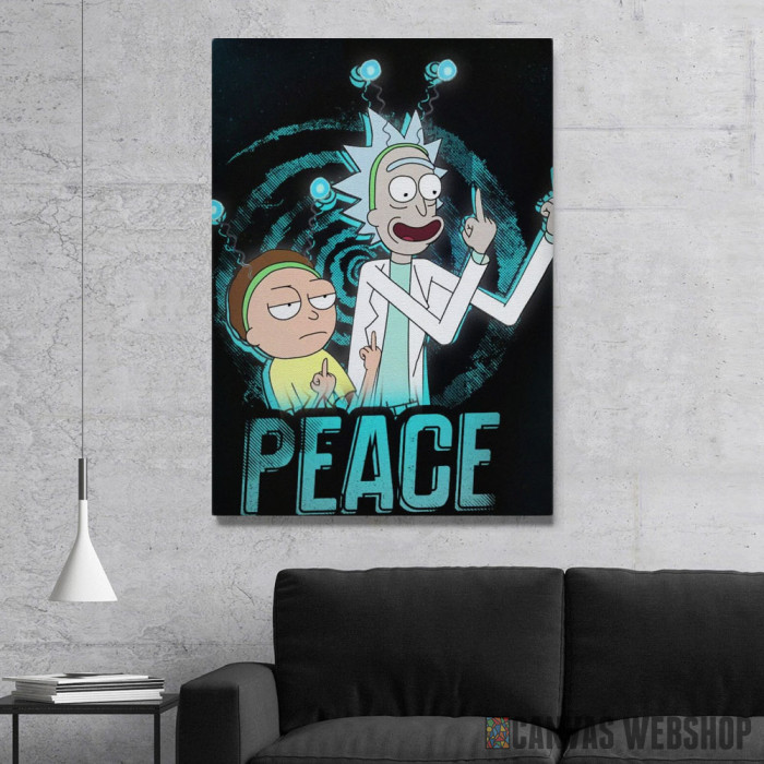 Rick and Morty peace je slika odštampana na kvalitetnom pamučnom platnu koje je zategnuto na ram od bukovog drveta. Slika Rick and Morty peace je dostupna u različitim dimenzijama.