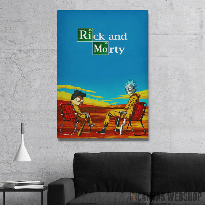 Rick Morty Breaking Bad je slika odštampana na kvalitetnom pamučnom platnu koje je zategnuto na ram od bukovog drveta. Slika Rick Morty Breaking Bad je dostupna u različitim dimenzijama.