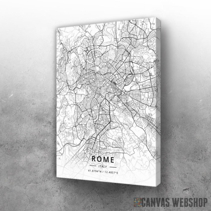 Rim mapa - white je slika odštampana na kvalitetnom pamučnom platnu koje je zategnuto na ram od bukovog drveta. Slika Rim mapa - white je dostupna u različitim dimenzijama.