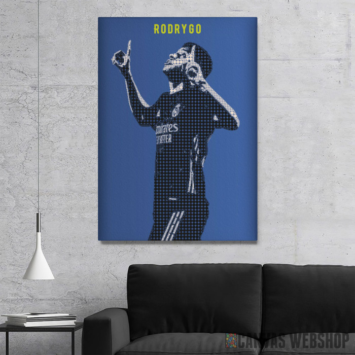 Rodrygo je slika odštampana na kvalitetnom pamučnom platnu koje je zategnuto na ram od bukovog drveta. Slika Rodrygo je dostupna u različitim dimenzijama.