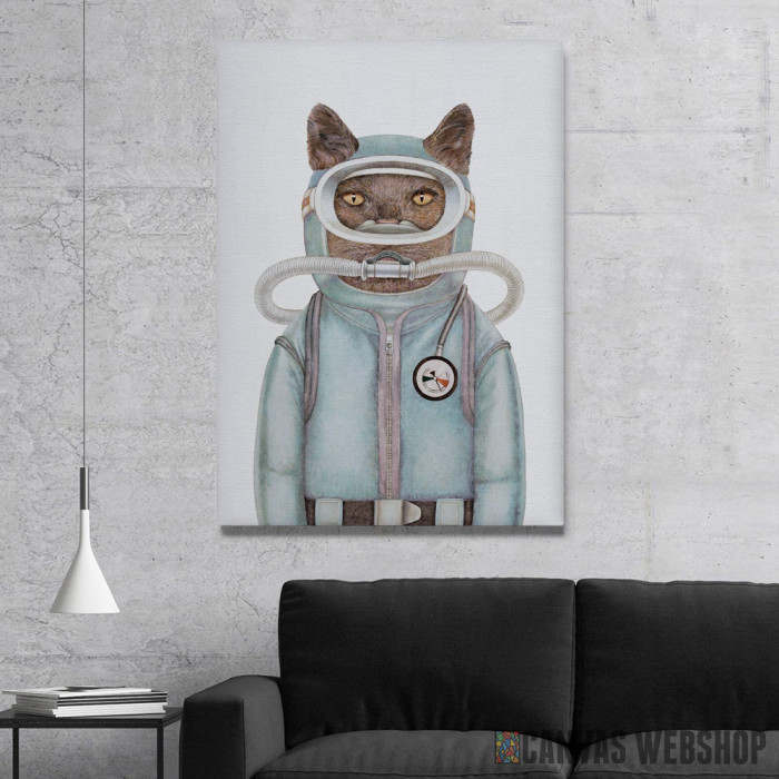 Scuba Cat je slika odštampana na kvalitetnom pamučnom platnu koje je zategnuto na ram od bukovog drveta. Slika Scuba Cat je dostupna u različitim dimenzijama.