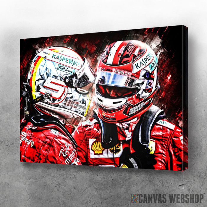 Sebastian Vettel Charles Leclerc je slika odštampana na kvalitetnom pamučnom platnu koje je zategnuto na ram od bukovog drveta. Slika Sebastian Vettel Charles Leclerc je dostupna u različitim dimenzijama.