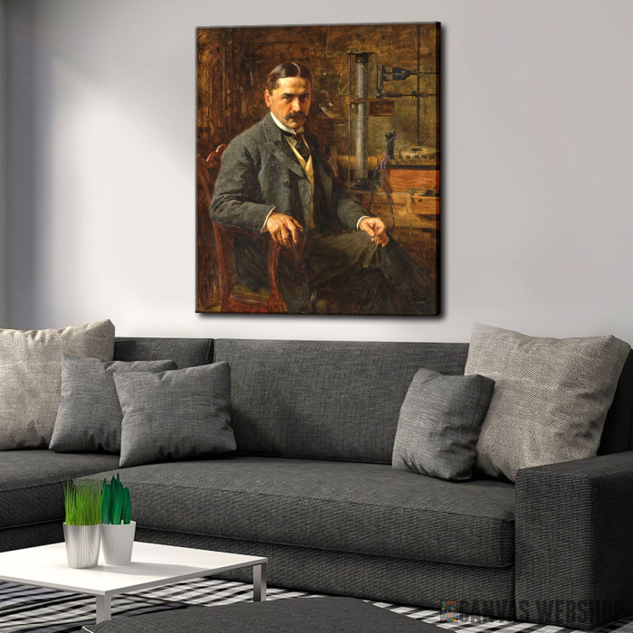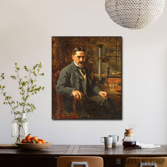 Ova izvanredna slika prikazuje Mihajla Pupina, jednog od najvažnijih srpskih naučnika i pronalazača, autora mnogih revolucionarnih otkrića u oblasti fizike i telekomunikacija. Slika je delo čuvenog slikara Paje Jovanovića, koji je svojim realističnim stilom uspeo da prikaže dostojanstvo i mudrost Pupina, naglašavajući njegovu izuzetnu ulogu u svetu nauke.