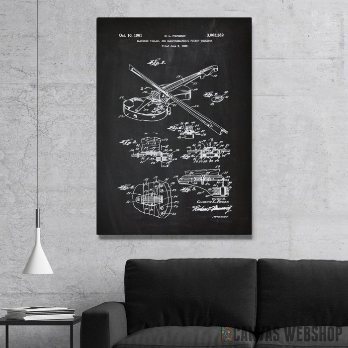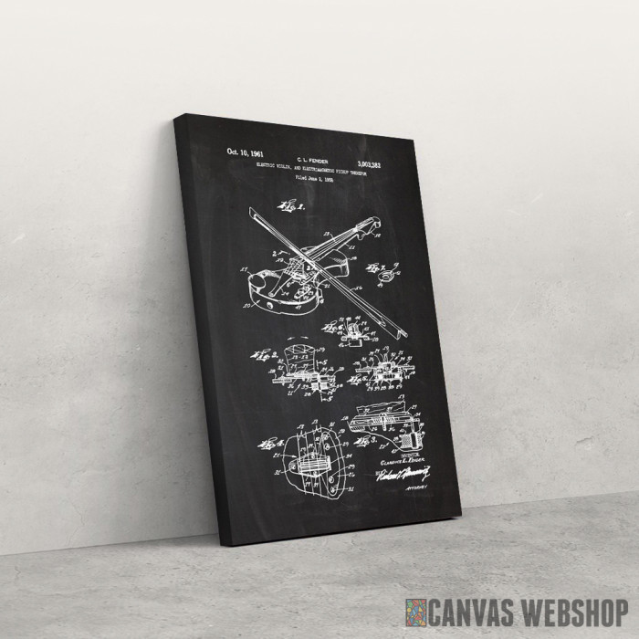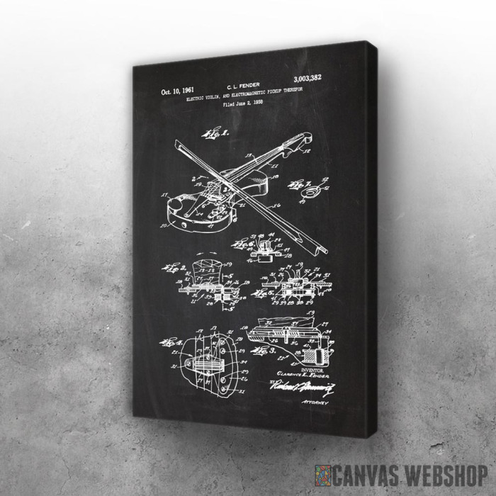 1958 Electric Violin - Patent Drawing je slika odštampana na kvalitetnom pamučnom platnu koje je zategnuto na ram od bukovog drveta. Slika 1958 Electric Violin - Patent Drawing je dostupna u različitim dimenzijama.