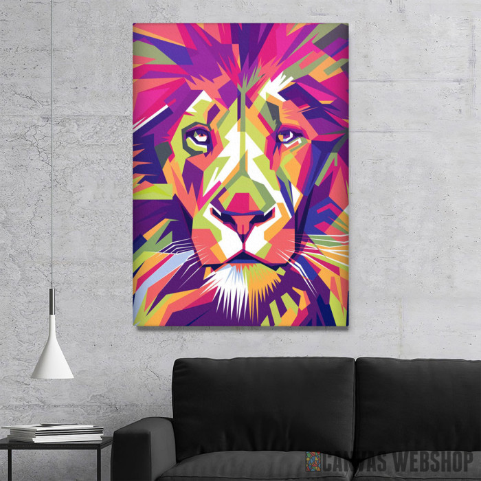 Apstraktni lav je slika odštampana na kvalitetnom pamučnom platnu koje je zategnuto na ram od bukovog drveta. Slika Apstraktni lav je dostupna u različitim dimenzijama.