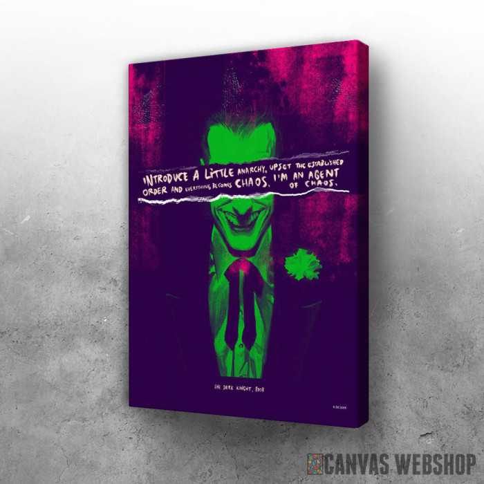 Džoker Batman je slika odštampana na kvalitetnom pamučnom platnu koje je zategnuto na ram od bukovog drveta. Slika Džoker Batman je dostupna u različitim dimenzijama.
