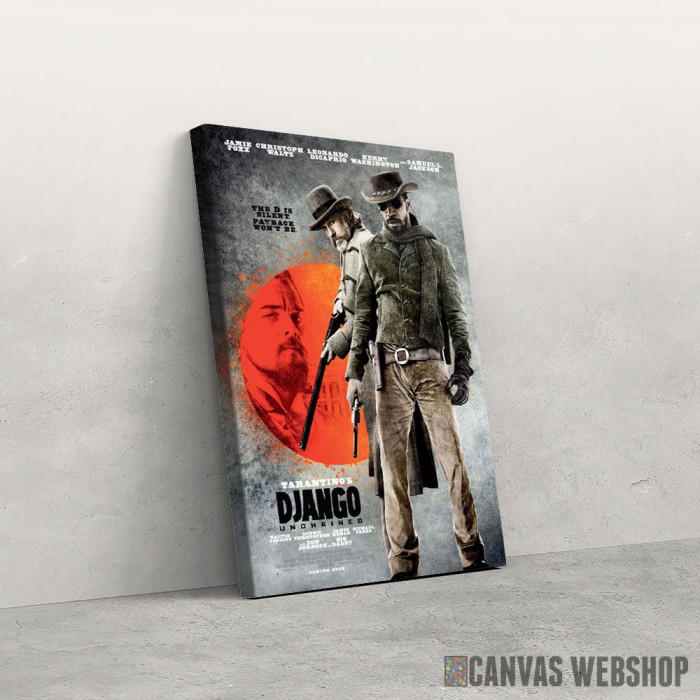 Django vs Calvin Candie je slika odštampana na kvalitetnom pamučnom platnu koje je zategnuto na ram od bukovog drveta. Slika Django vs Calvin Candie je dostupna u različitim dimenzijama.