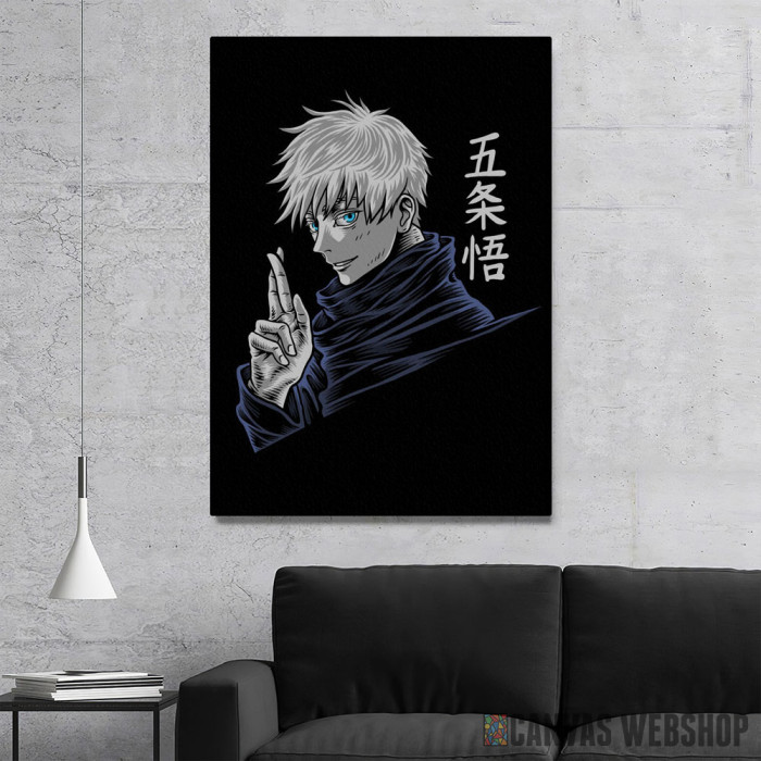 Gojo Satoru je slika odštampana na kvalitetnom pamučnom platnu koje je zategnuto na ram od bukovog drveta. Slika Gojo Satoru je dostupna u različitim dimenzijama.