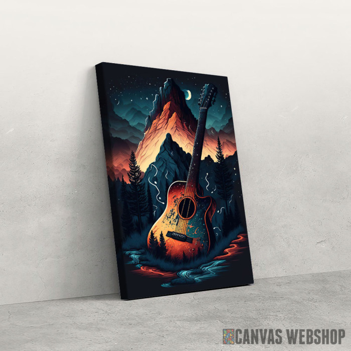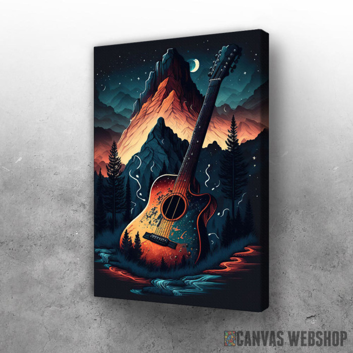 Apstraktna slika gitare u prirodi je slika odštampana na kvalitetnom pamučnom platnu koje je zategnuto na ram od bukovog drveta. Slika Apstraktna slika gitare u prirodi je dostupna u različitim dimenzijama.
