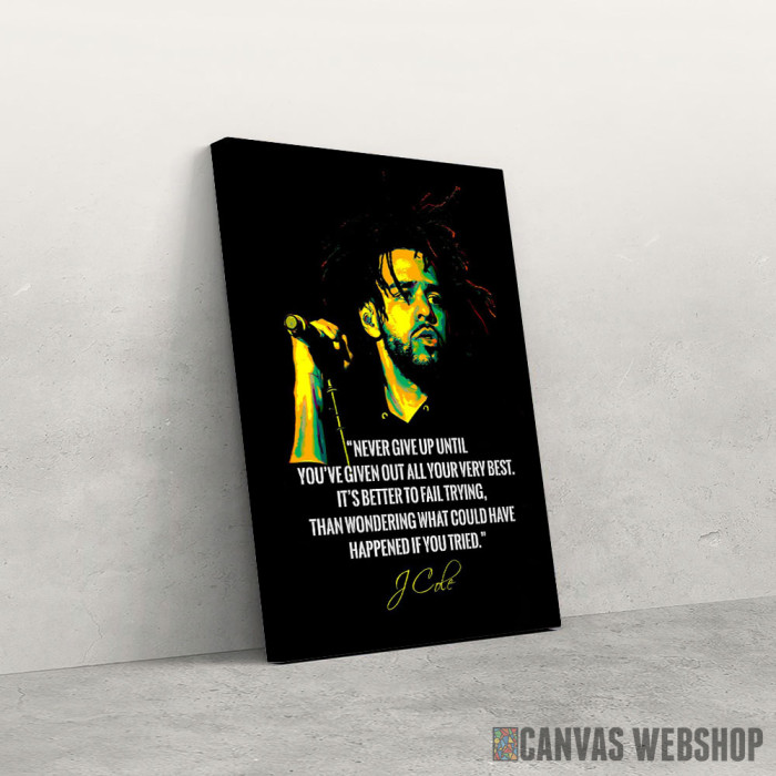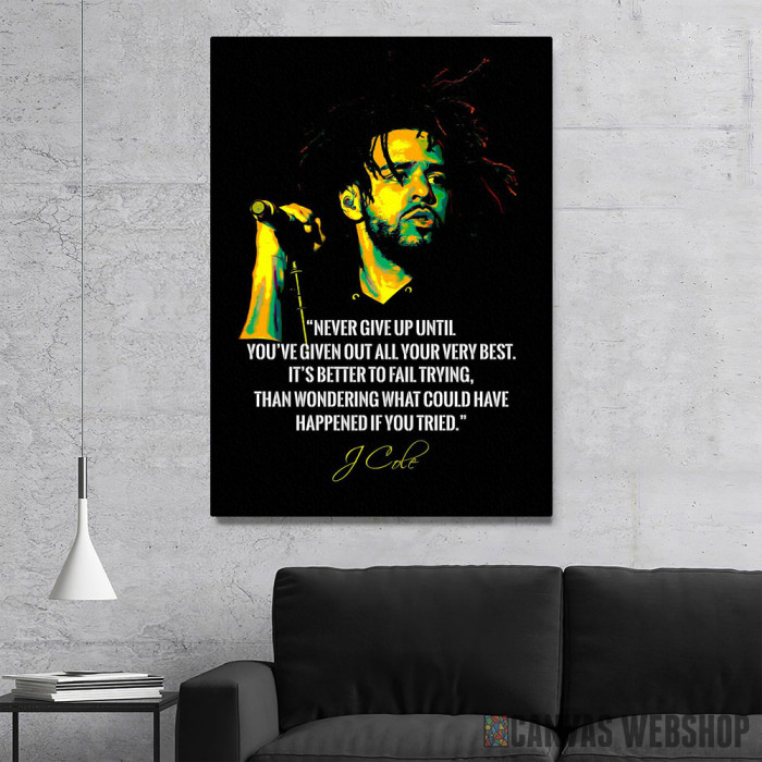 J COLE motivacioni citat je slika odštampana na kvalitetnom pamučnom platnu koje je zategnuto na ram od bukovog drveta. Slika J COLE motivacioni citat je dostupna u različitim dimenzijama.
