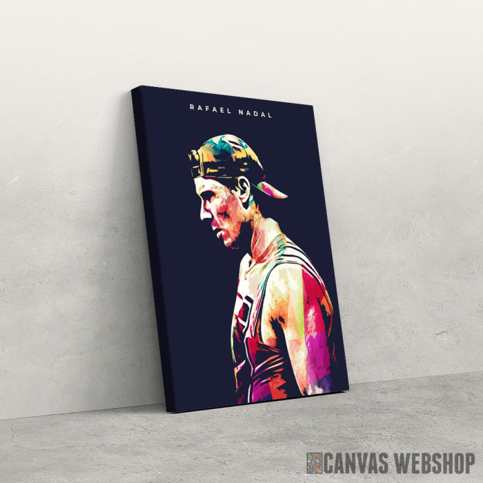 Rafael Nadal je slika odštampana na kvalitetnom pamučnom platnu koje je zategnuto na ram od bukovog drveta. Slika Rafael Nadal je dostupna u različitim dimenzijama.