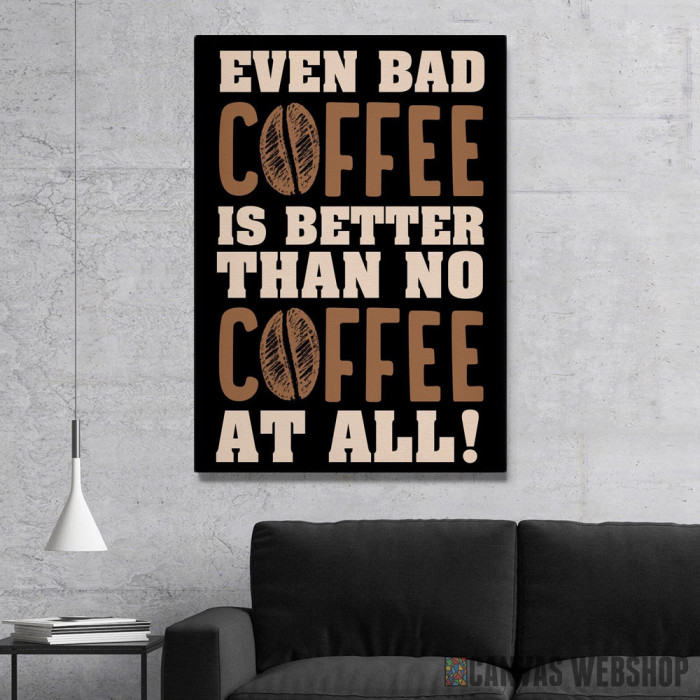 Bad Coffee je slika odštampana na kvalitetnom pamučnom platnu koje je zategnuto na ram od bukovog drveta. Slika Bad Coffee je dostupna u različitim dimenzijama.
