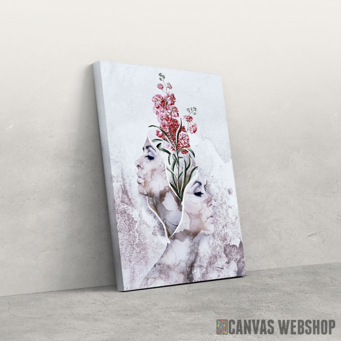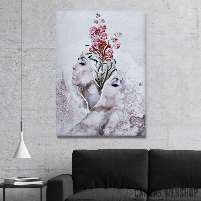 Dva lica je slika odštampana na kvalitetnom pamučnom platnu koje je zategnuto na ram od bukovog drveta. Slika Dva lica je dostupna u različitim dimenzijama.