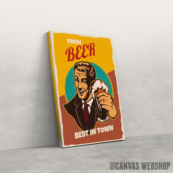 Fresh Beer je slika odštampana na kvalitetnom pamučnom platnu koje je zategnuto na ram od bukovog drveta. Slika Fresh Beer je dostupna u različitim dimenzijama.