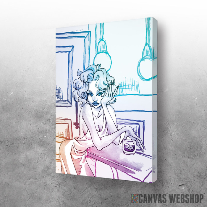 Girl in a bar je slika odštampana na kvalitetnom pamučnom platnu koje je zategnuto na ram od bukovog drveta. Slika Girl in a bar je dostupna u različitim dimenzijama.