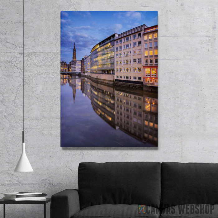 Hamburg Refleksija je slika odštampana na kvalitetnom pamučnom platnu koje je zategnuto na ram od bukovog drveta. Slika Hamburg Refleksija je dostupna u različitim dimenzijama.