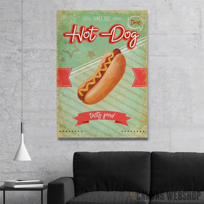 Hot Dog je slika odštampana na kvalitetnom pamučnom platnu koje je zategnuto na ram od bukovog drveta. Slika Hot Dog je dostupna u različitim dimenzijama.