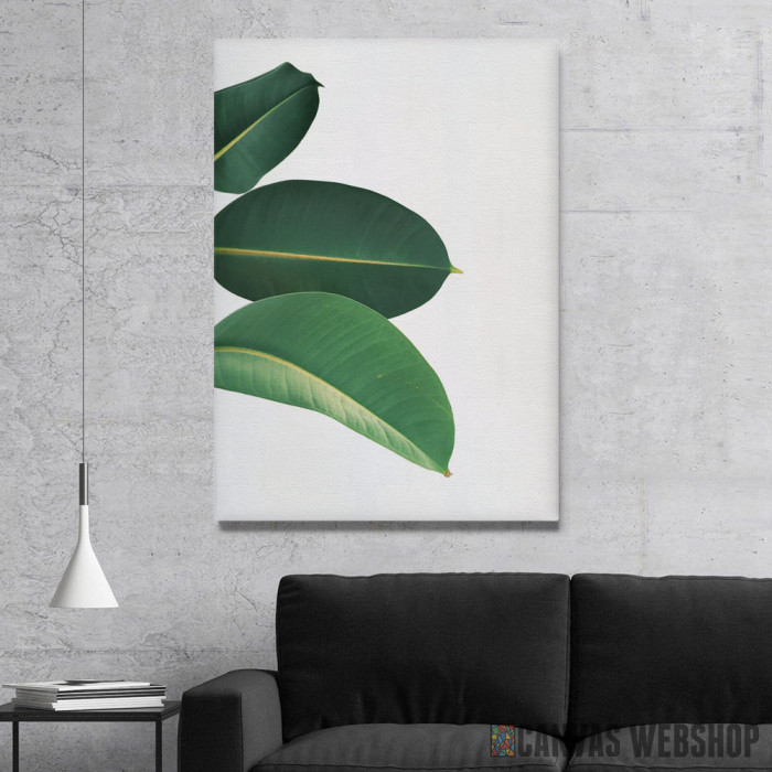 Listovi fikusa je slika odštampana na kvalitetnom pamučnom platnu koje je zategnuto na ram od bukovog drveta. Slika Listovi fikusa je dostupna u različitim dimenzijama.