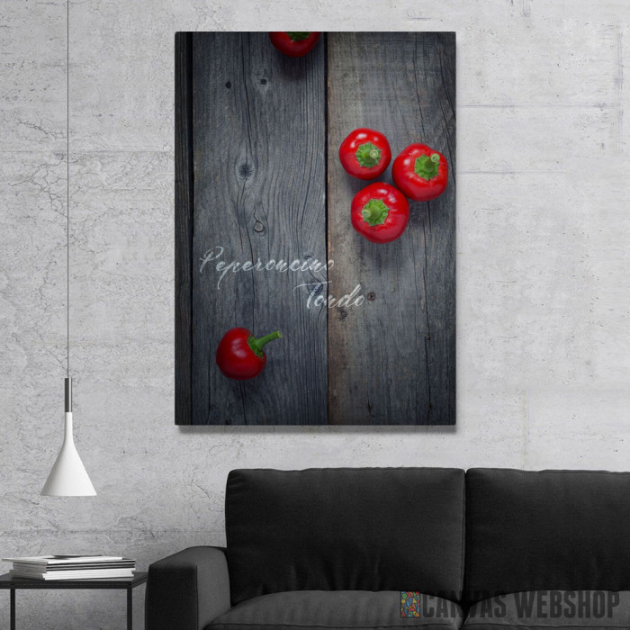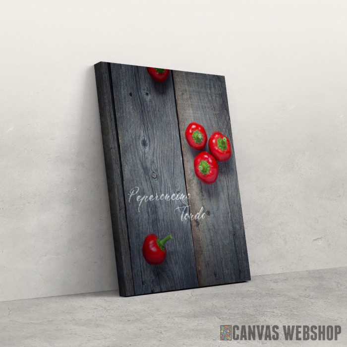 Ljute Paprike je slika odštampana na kvalitetnom pamučnom platnu koje je zategnuto na ram od bukovog drveta. Slika Ljute Paprike je dostupna u različitim dimenzijama.