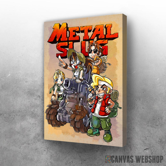 Metal Slug Heroji na tenku je slika odštampana na kvalitetnom pamučnom platnu koje je zategnuto na ram od bukovog drveta. Slika Metal Slug Heroji na tenku je dostupna u različitim dimenzijama.