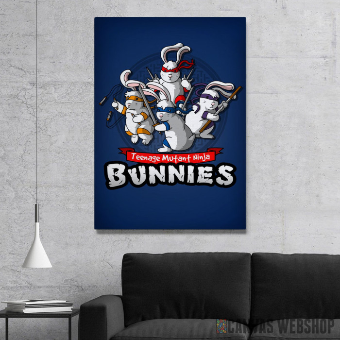 mutant bunnies je slika odštampana na kvalitetnom pamučnom platnu koje je zategnuto na ram od bukovog drveta. Slika mutant bunnies je dostupna u različitim dimenzijama.