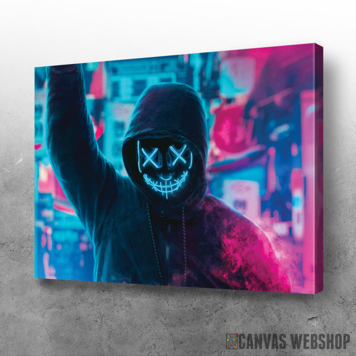 Neon mask je slika odštampana na kvalitetnom pamučnom platnu koje je zategnuto na ram od bukovog drveta. Slika Neon mask je dostupna u različitim dimenzijama.