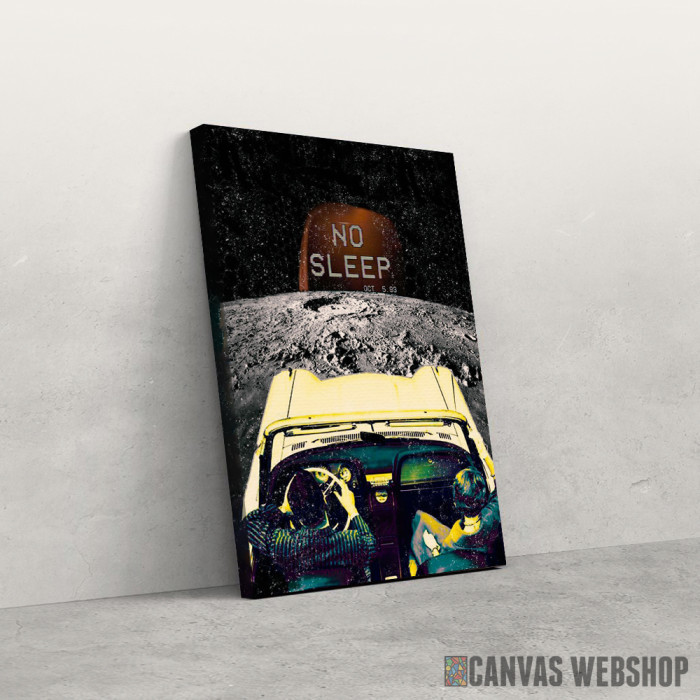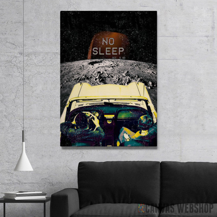No sleep je slika odštampana na kvalitetnom pamučnom platnu koje je zategnuto na ram od bukovog drveta. Slika No sleep je dostupna u različitim dimenzijama.