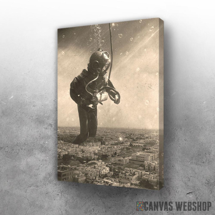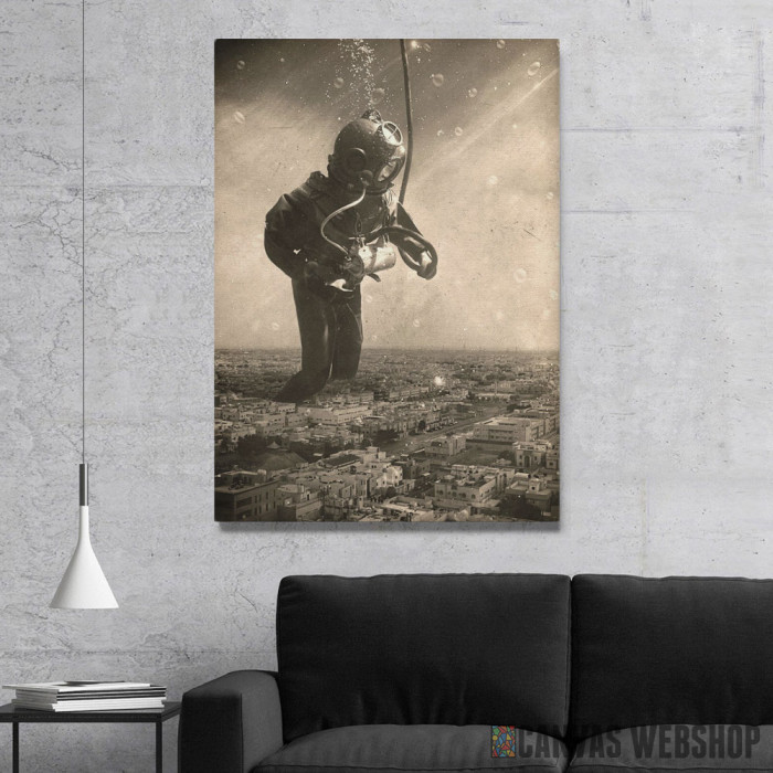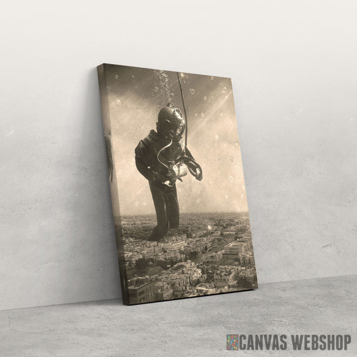 Podvodni grad je slika odštampana na kvalitetnom pamučnom platnu koje je zategnuto na ram od bukovog drveta. Slika Podvodni grad je dostupna u različitim dimenzijama.
