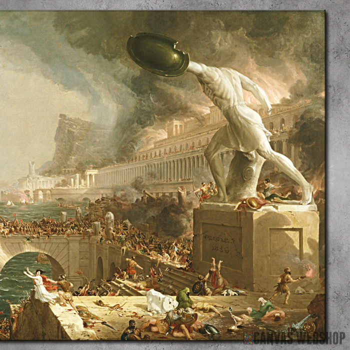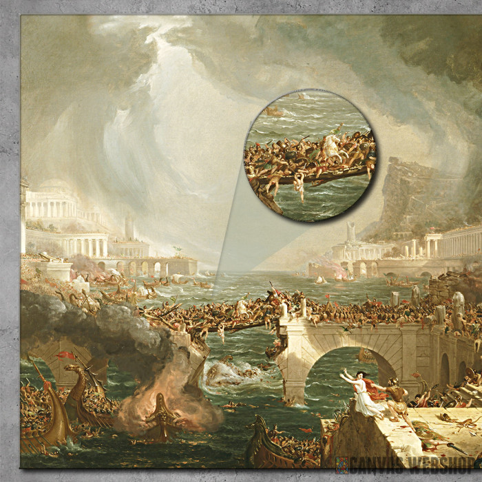 Put Carstva - Uništenje je slika odštampana na kvalitetnom pamučnom platnu koje je zategnuto na ram od bukovog drveta. Slika je dostupna u različitim dimenzijama.