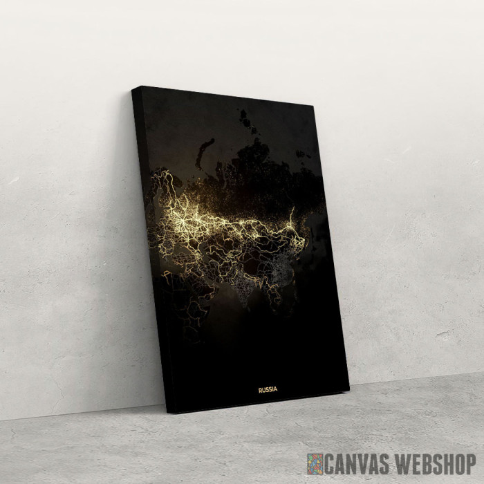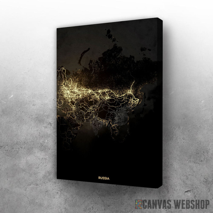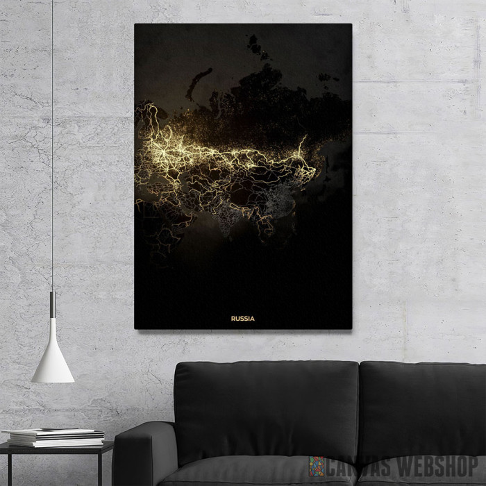 Rusija mapa - crno zlatno je slika odštampana na kvalitetnom pamučnom platnu koje je zategnuto na ram od bukovog drveta. Slika Rusija mapa - crno zlatno je dostupna u različitim dimenzijama.