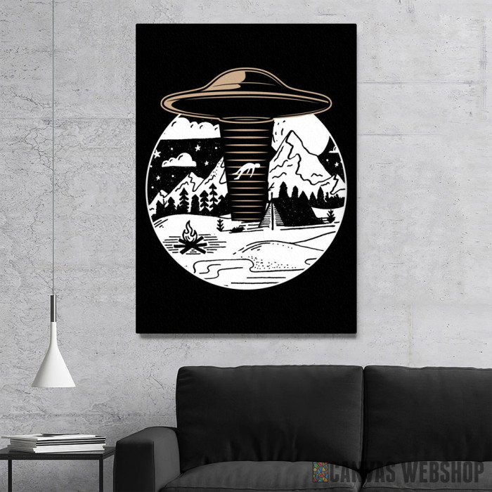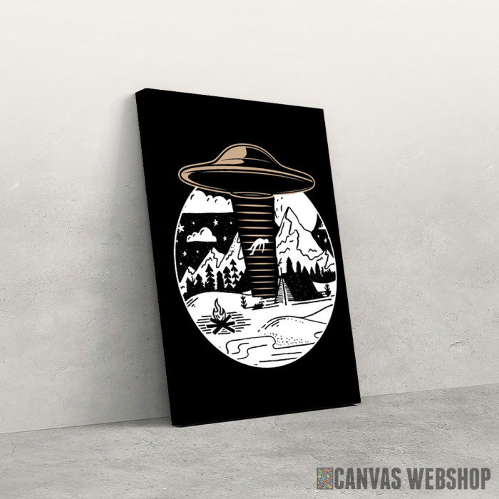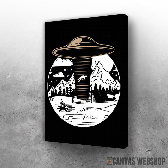 NLO kampovanje je slika odštampana na kvalitetnom pamučnom platnu koje je zategnuto na ram od bukovog drveta. Slika NLO kampovanje je dostupna u različitim dimenzijama.