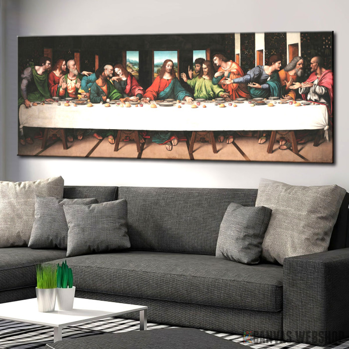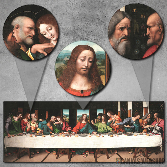 Tajna večera je slika odštampana na kvalitetnom pamučnom platnu koje je zategnuto na ram od bukovog drveta. Slika je dostupna u različitim dimenzijama.