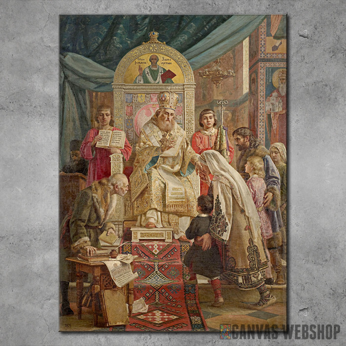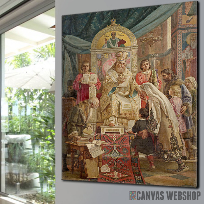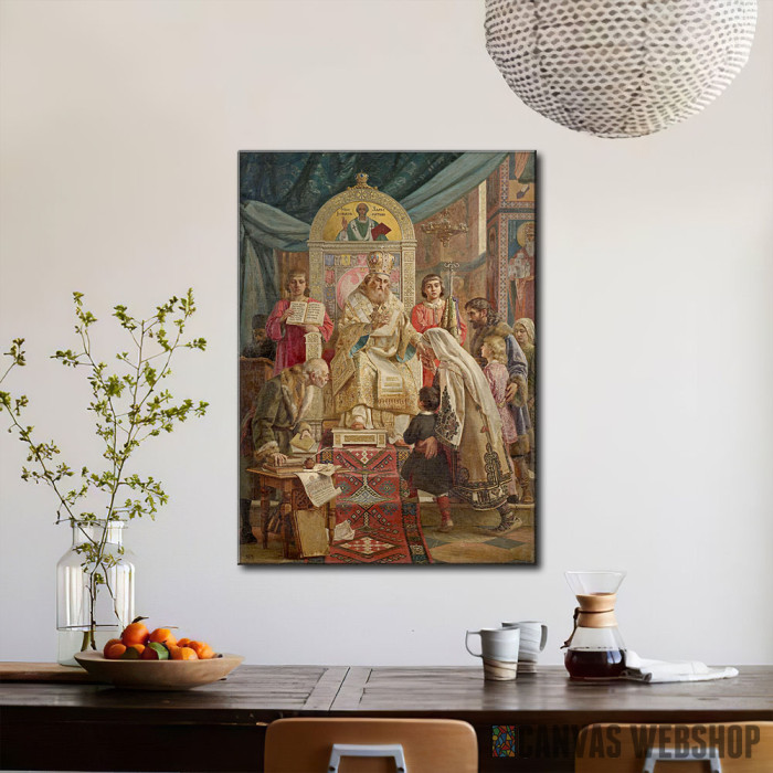 Sveti Sava blagosilja Srpčad, Uroš Predić je slika odštampana na kvalitetnom pamučnom platnu koje je zategnuto na ram od bukovog drveta. Slikaje dostupna u različitim dimenzijama.