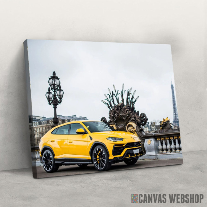 žuti Urus je slika odštampana na kvalitetnom pamučnom platnu koje je zategnuto na ram od bukovog drveta. Slika žuti Urus je dostupna u različitim dimenzijama.
