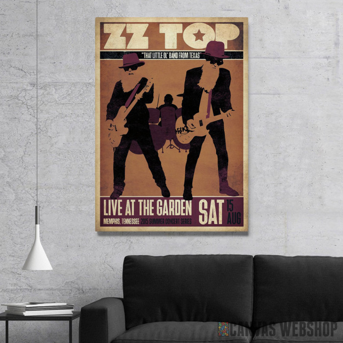 ZZ Top Retro je slika odštampana na kvalitetnom pamučnom platnu koje je zategnuto na ram od bukovog drveta. Slika ZZ Top Retro je dostupna u različitim dimenzijama.