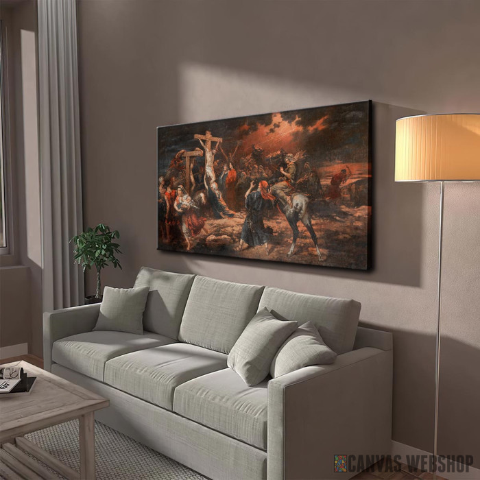 Golgota je slika odštampana na kvalitetnom pamučnom platnu koje je zategnuto na ram od bukovog drveta. Slika je dostupna u različitim dimenzijama.